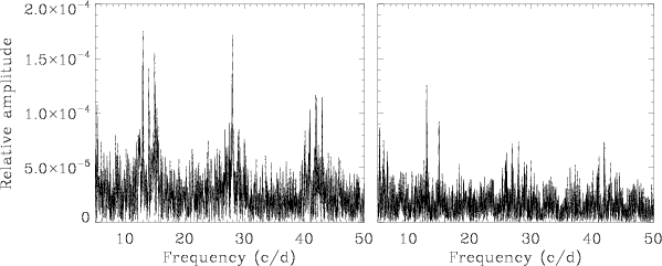 amplitude spectrum using Period04 (Lenz & Breger 2005). In the left panel of