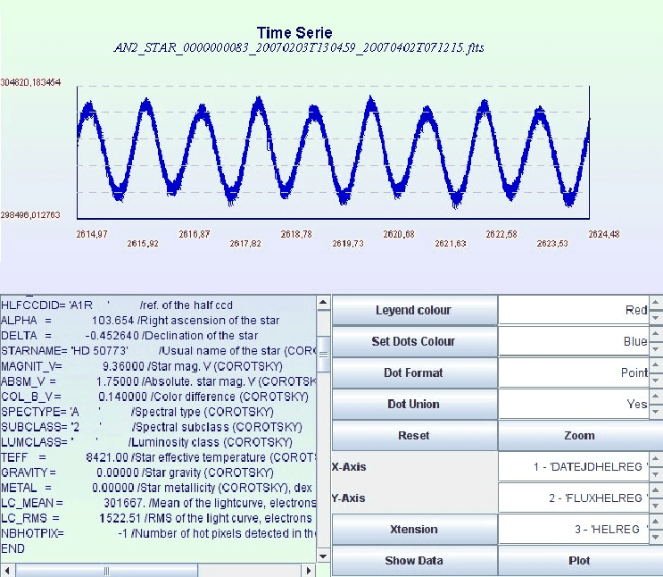 link. The user can select the columns and the FITS extension (for the asteroseismology programme) to be plotted. Zoom views can