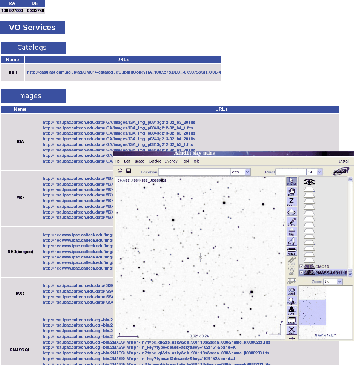 data in the context of the Virtual Observatory). These files can be fetched by the user. Images and catalogues can be visualized using Aladin