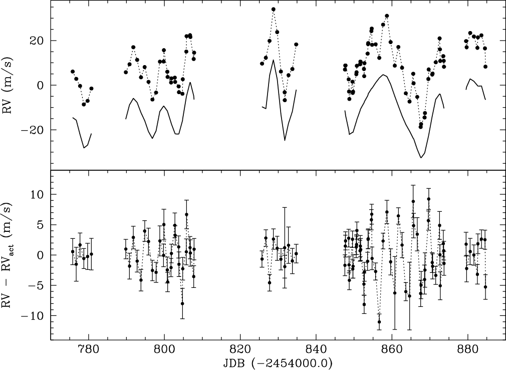 activity index, and radial velocity are detected in CoRoT-7 (see Fig. 1). The radial velocity measurements have a