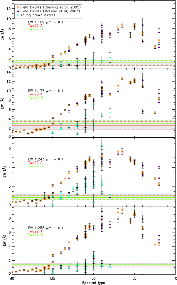 K for TWA22 B and surface gravities between 4.0 and 5.5 dex. From our photometry and an M6