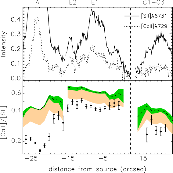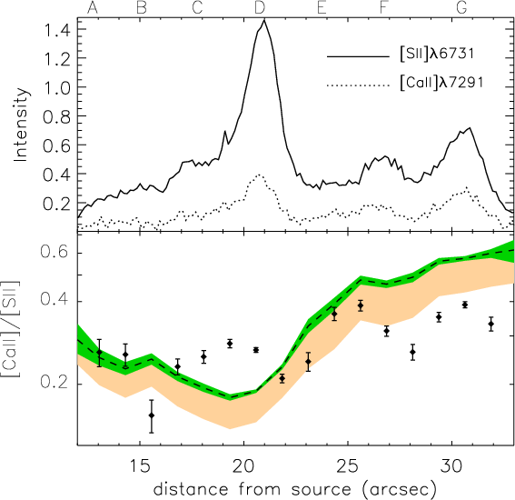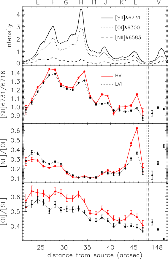 Figure A.2 shows that [N II]/[O I] is <1 in the jet