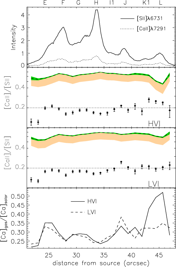 velocity. However, the high Ca gas-phase abundance estimated in some of