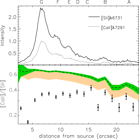 surfaces, confirming a prediction from shocks models. Calcium turns out
