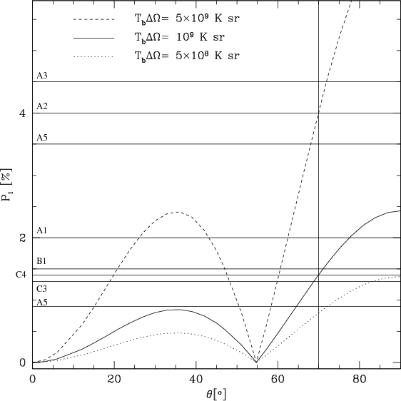 ). We solved the polarized radiative transfer using the equations from Nedoluha & Watson (1992) for the 6.7 GHz methanol maser transition. In Fig. 3 we show the relation between