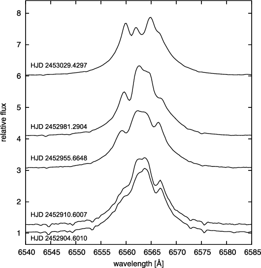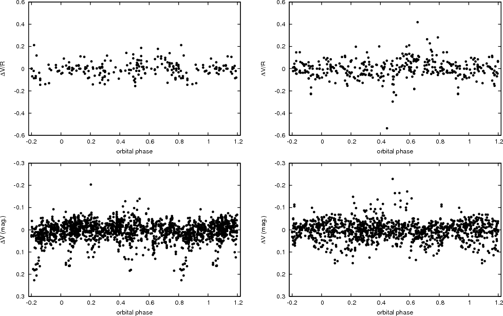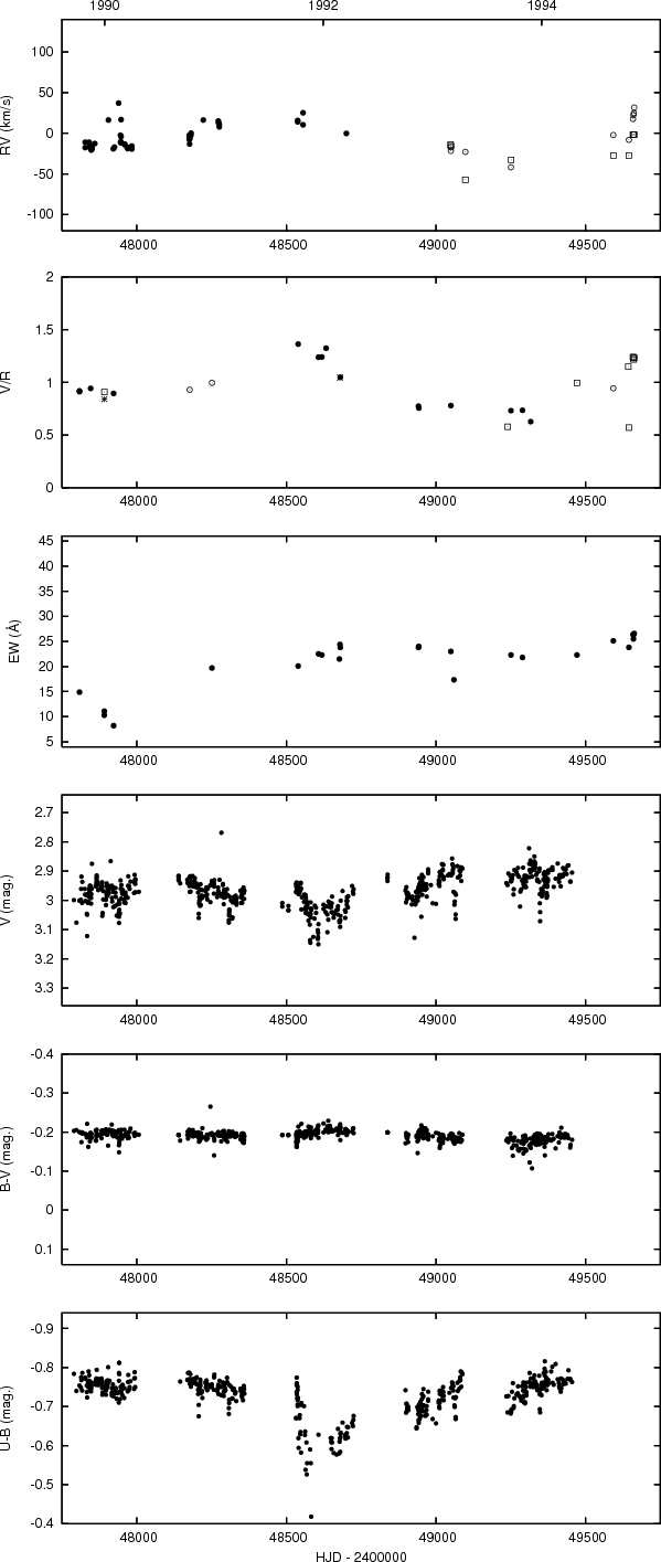 Although quite extensive, our dataset is not suitable to a detailed study of rapid spectral and light changes since it contains only a very few whole-night series of observations or simultaneous observations from observatories with a large difference in local time. For that reason we plan to obtain new dedicated observations and postpone a detailed study of rapid changes for later.