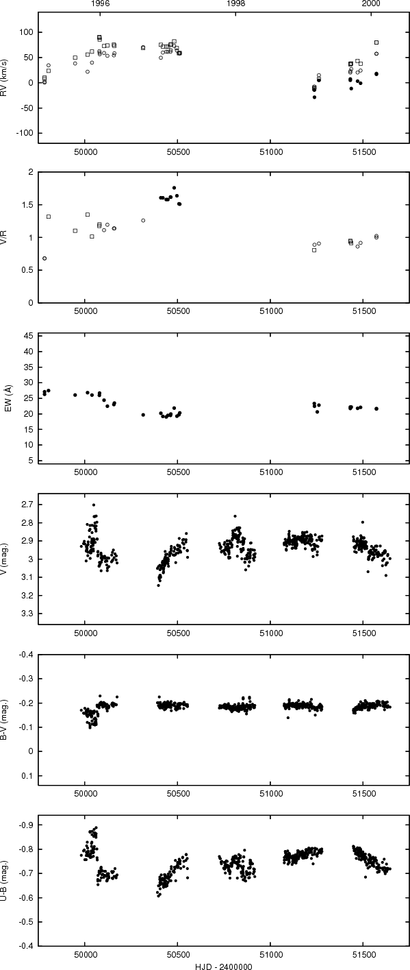 - To present the first truly comprehensive examination of the long-term variations in a Be star, identify the individual patterns, and examine the relationships between the spectroscopic and broad-band photometric changes (cf. Sect. 4).