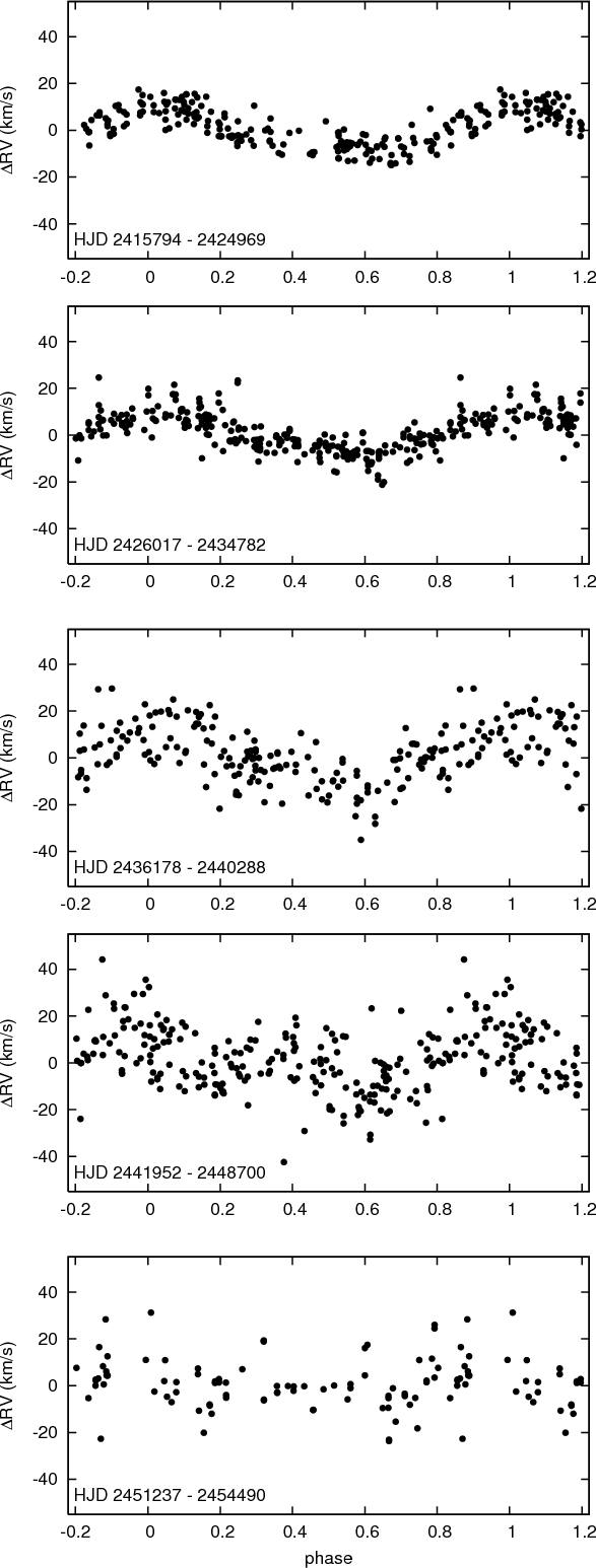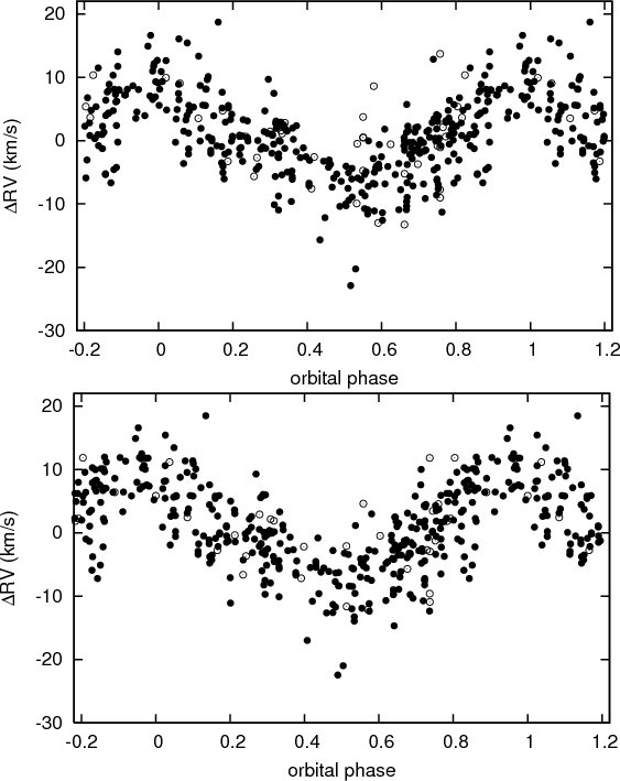 - There is one misprint on page 171 of Harmanec (1984): The correct RV at JD ..24563.639 is 34.7 km s-1, not 37.4 km s-1 as given there. Moreover, in several cases when more spectra have the same (inaccurate) JD, the H I and He I RVs do not correspond to the same spectrum.