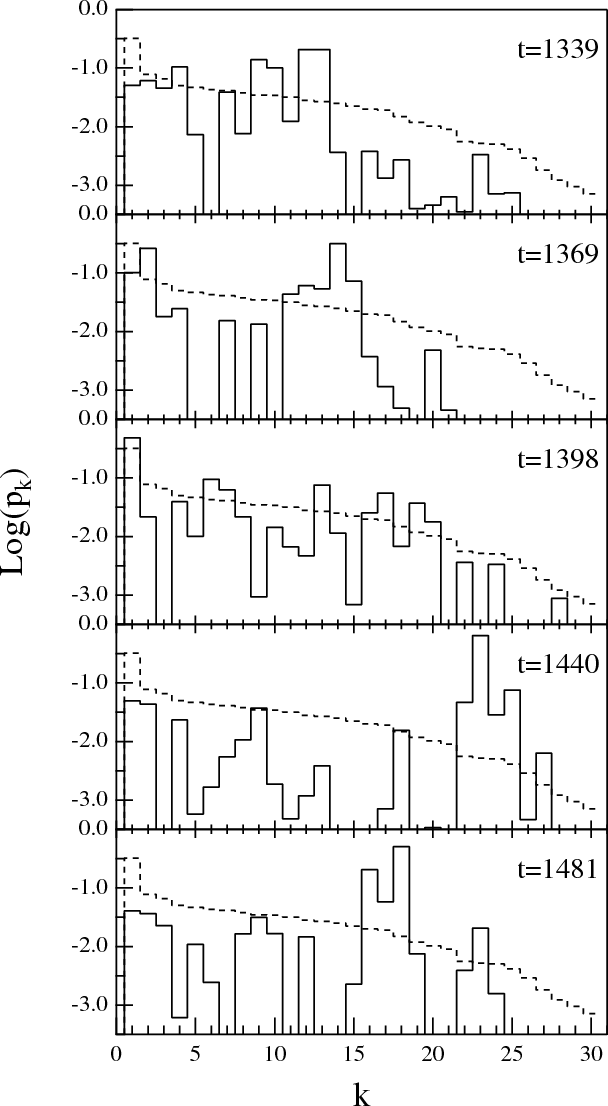the fluctuations in the information entropy S(t) have