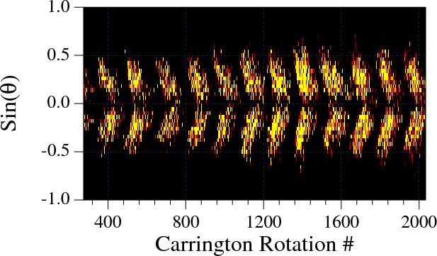 latitudinal bins). The butterfly diagram