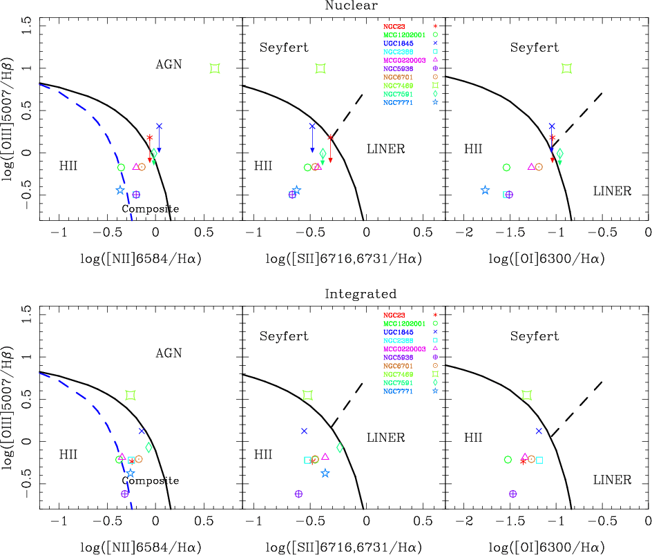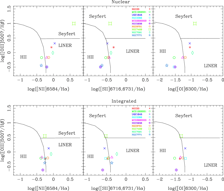 line ratios than the nuclear ones, probably because of more contribution from the diffuse emission. The H