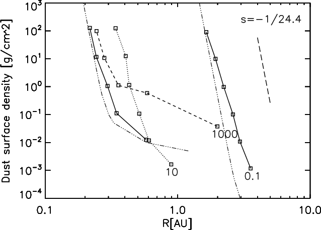 The parameter q determines how fast the condensation of dust can take place and is adjusted such that the increase in optical depth up to the