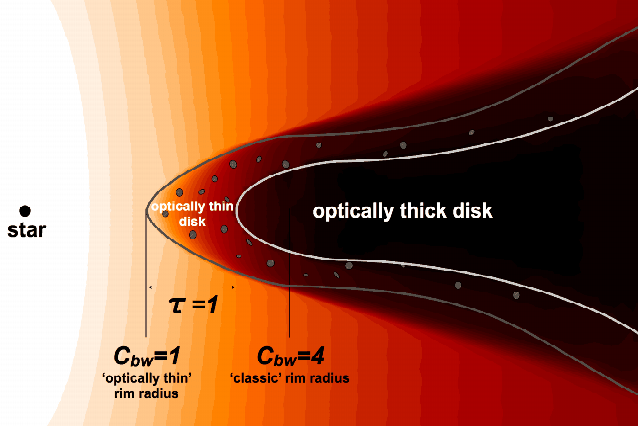 midplane and the rim radii are consequently smaller. Gas undergoing