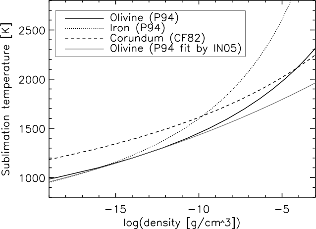 the dependence of the sublimation temperature on gas density (IN05). Isella et al. (2006)
