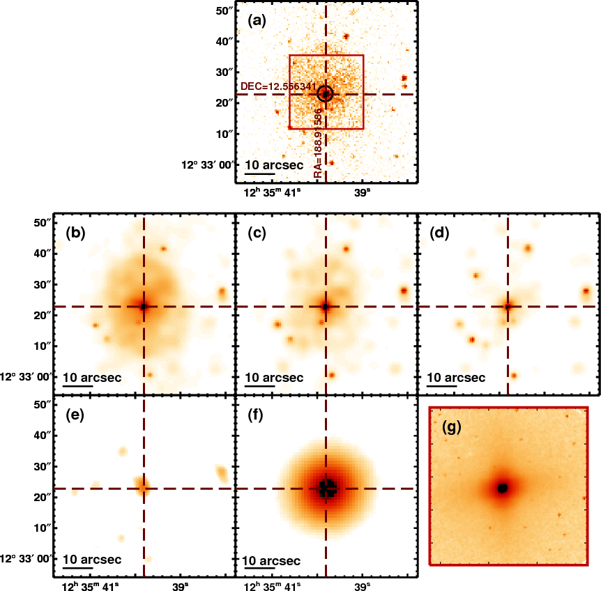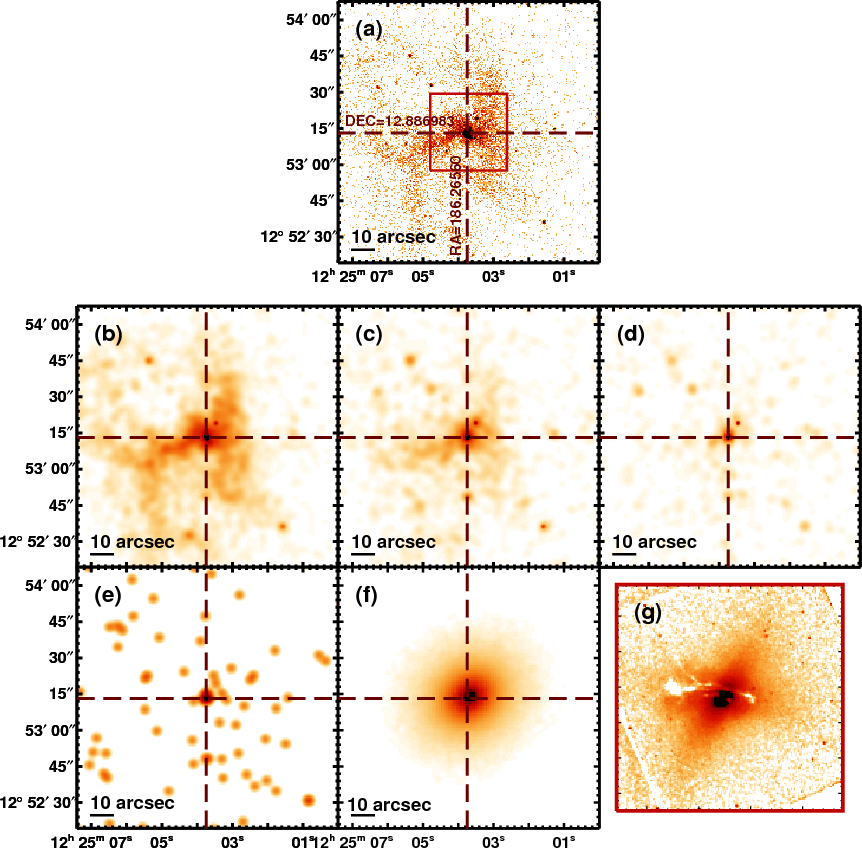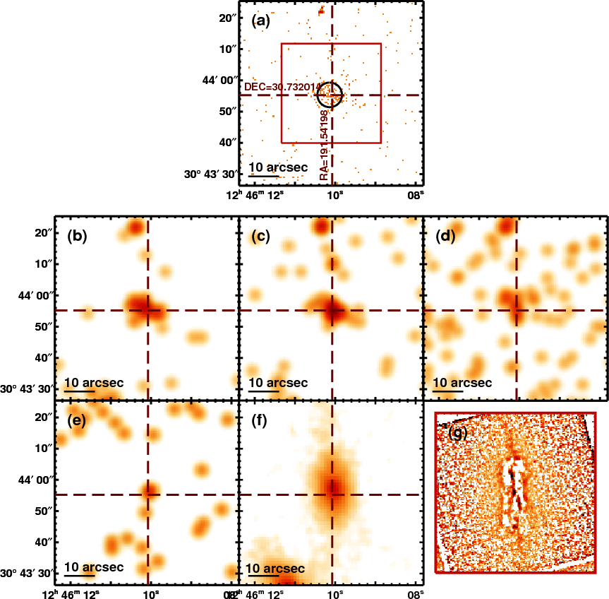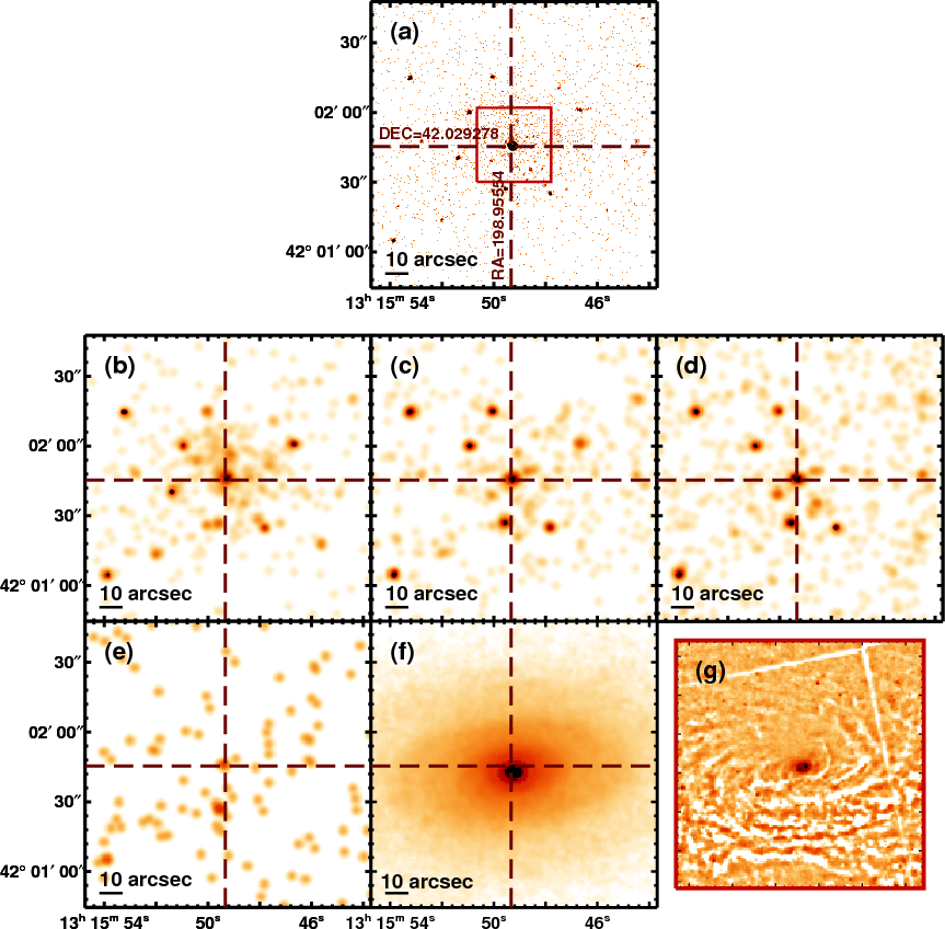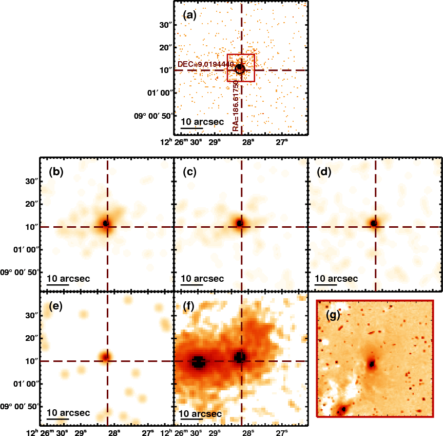 It is therefore important to isolate and study the nature of the source hosted by most of the LINERs. Satyapal et al. (2005) (see also Ho et al. 2001; Dudik et al. 2005; Satyapal et al. 2004) estimated 2-10 keV luminosities for a sample of 41 LINERs using Chandra data. They find that AGN are very frequent among LINERs. Eddington-ratio considerations led them to conclude that LINERs represent the faint end of the fundamental correlation between mass accretion and star formation rates (e.g. LINERs very inefficient accreting systems). Flohic et al. (2006) have studied a sample of 19 LINERs using archival Chandra data and find that the median AGN contribution to the 0.5-10 keV luminosity is 60%. They suggest that AGN power is not sufficient for producing the observed optical emission lines and invoke shocks and/or stellar processes. Our previous analysis (Gonzalez-Martin et al. 2006b, hereinafter GM+06) presented results from an homogeneous analysis of 51 LINER galaxies observed with Chandra. Morphological classification, together with spectral analysis (when possible), led us to conclude that at least 60% of LINERs may host an AGN. Following Ho et al. (1997), we consider a LINER to host an AGN when the nuclear regions showing an unresolved source at high X-ray energies (Zhang et al. 2009).