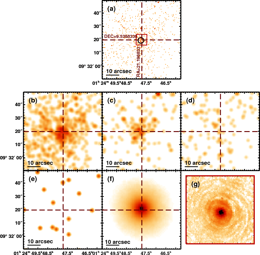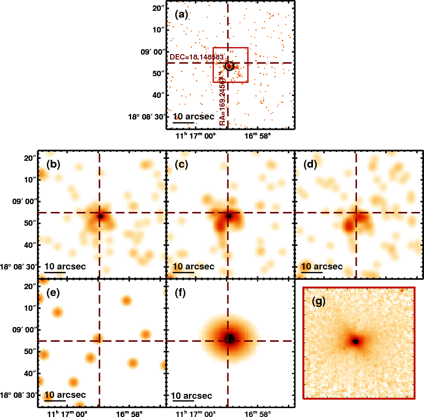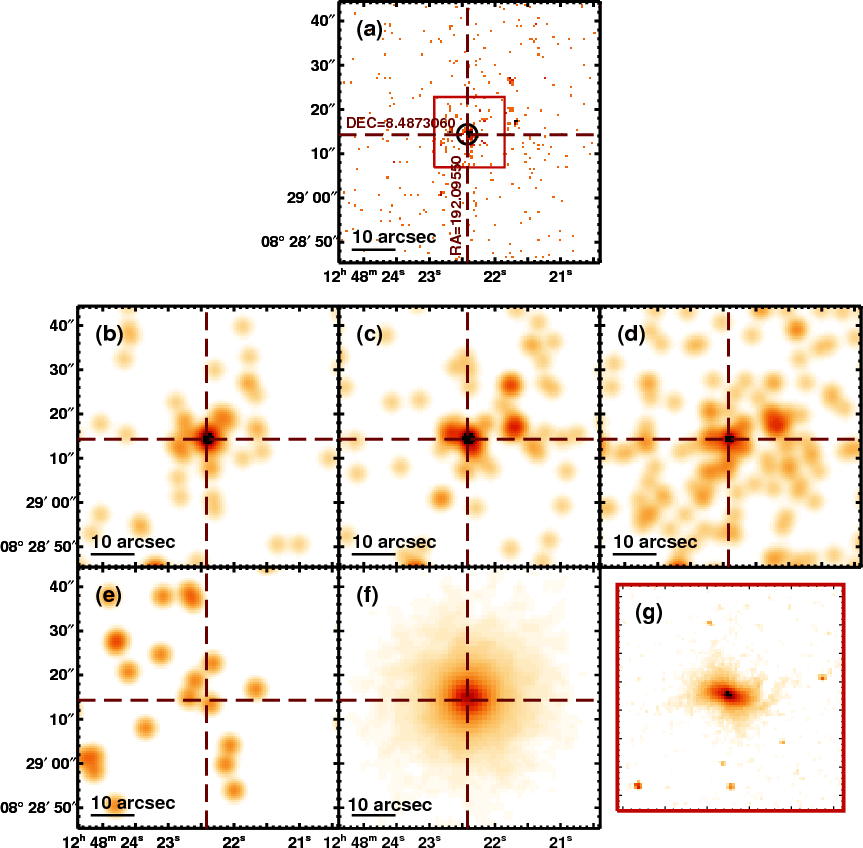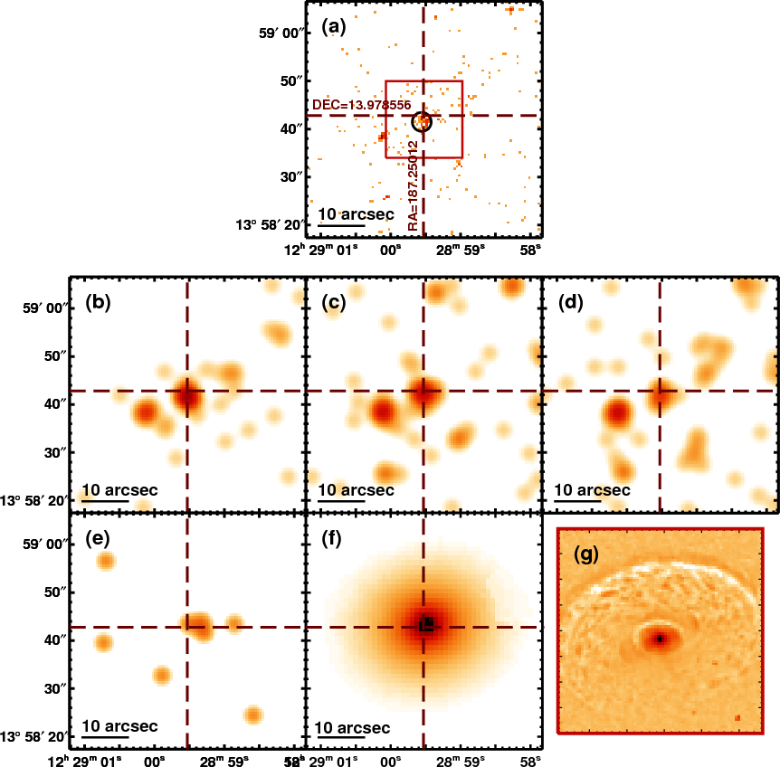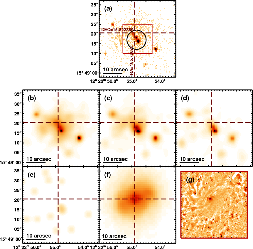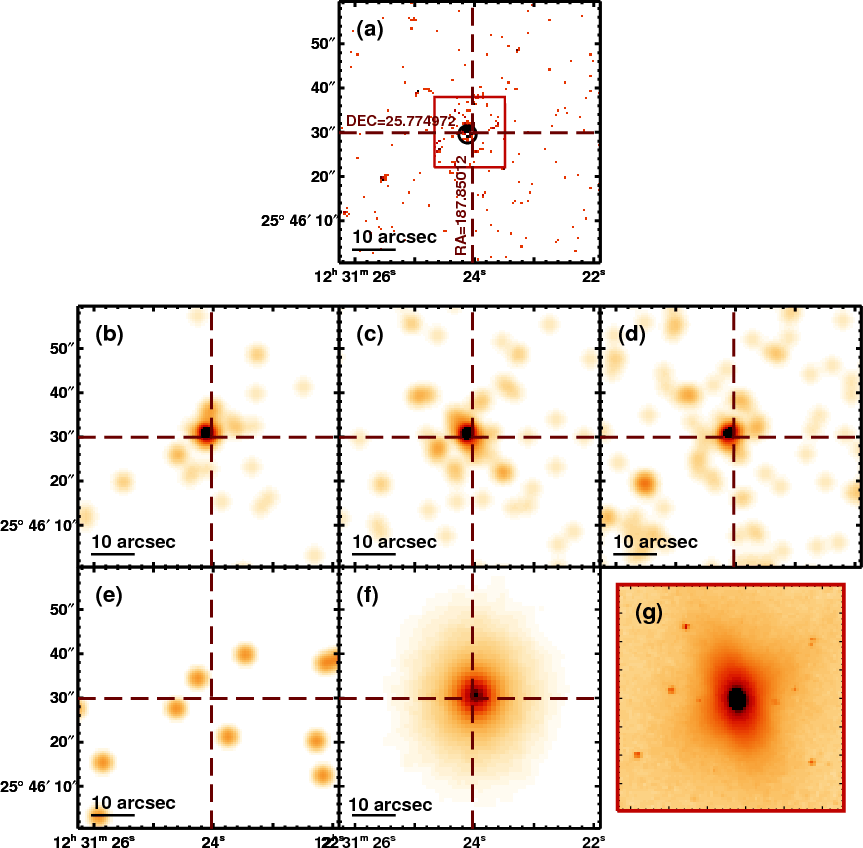 It is therefore important to isolate and study the nature of the source hosted by most of the LINERs. Satyapal et al. (2005) (see also Ho et al. 2001; Dudik et al. 2005; Satyapal et al. 2004) estimated 2-10 keV luminosities for a sample of 41 LINERs using Chandra data. They find that AGN are very frequent among LINERs. Eddington-ratio considerations led them to conclude that LINERs represent the faint end of the fundamental correlation between mass accretion and star formation rates (e.g. LINERs very inefficient accreting systems). Flohic et al. (2006) have studied a sample of 19 LINERs using archival Chandra data and find that the median AGN contribution to the 0.5-10 keV luminosity is 60%. They suggest that AGN power is not sufficient for producing the observed optical emission lines and invoke shocks and/or stellar processes. Our previous analysis (Gonzalez-Martin et al. 2006b, hereinafter GM+06) presented results from an homogeneous analysis of 51 LINER galaxies observed with Chandra. Morphological classification, together with spectral analysis (when possible), led us to conclude that at least 60% of LINERs may host an AGN. Following Ho et al. (1997), we consider a LINER to host an AGN when the nuclear regions showing an unresolved source at high X-ray energies (Zhang et al. 2009).