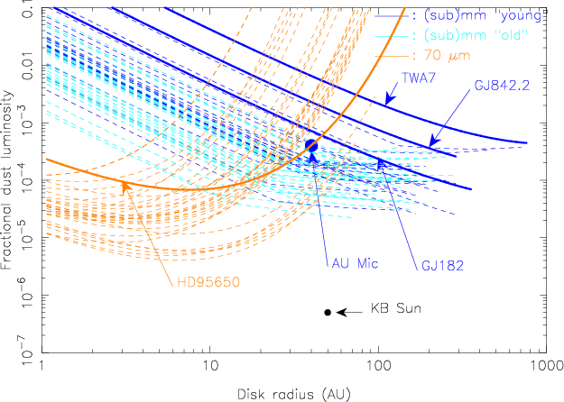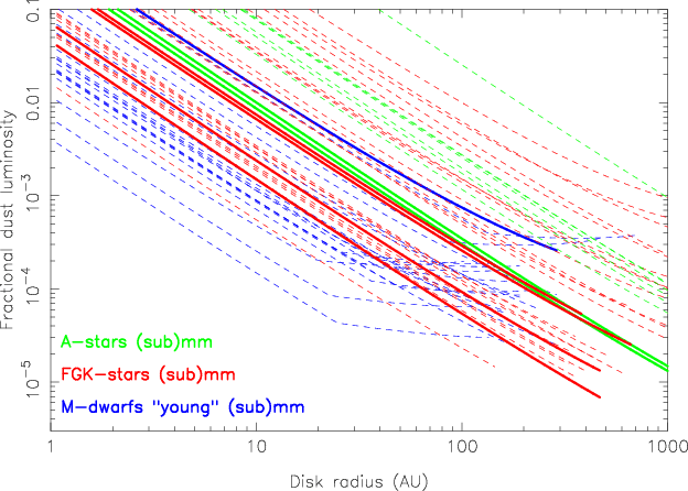 Using SCUBA and MAMBO-2, Lestrade et al. (2006) surveyed 32 relatively young M-dwarfs of moving groups
