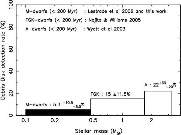 and newly detected one disk around the M 0.5 dwarf GJ842.2. Using Spitzer, Gautier et al. (2007)