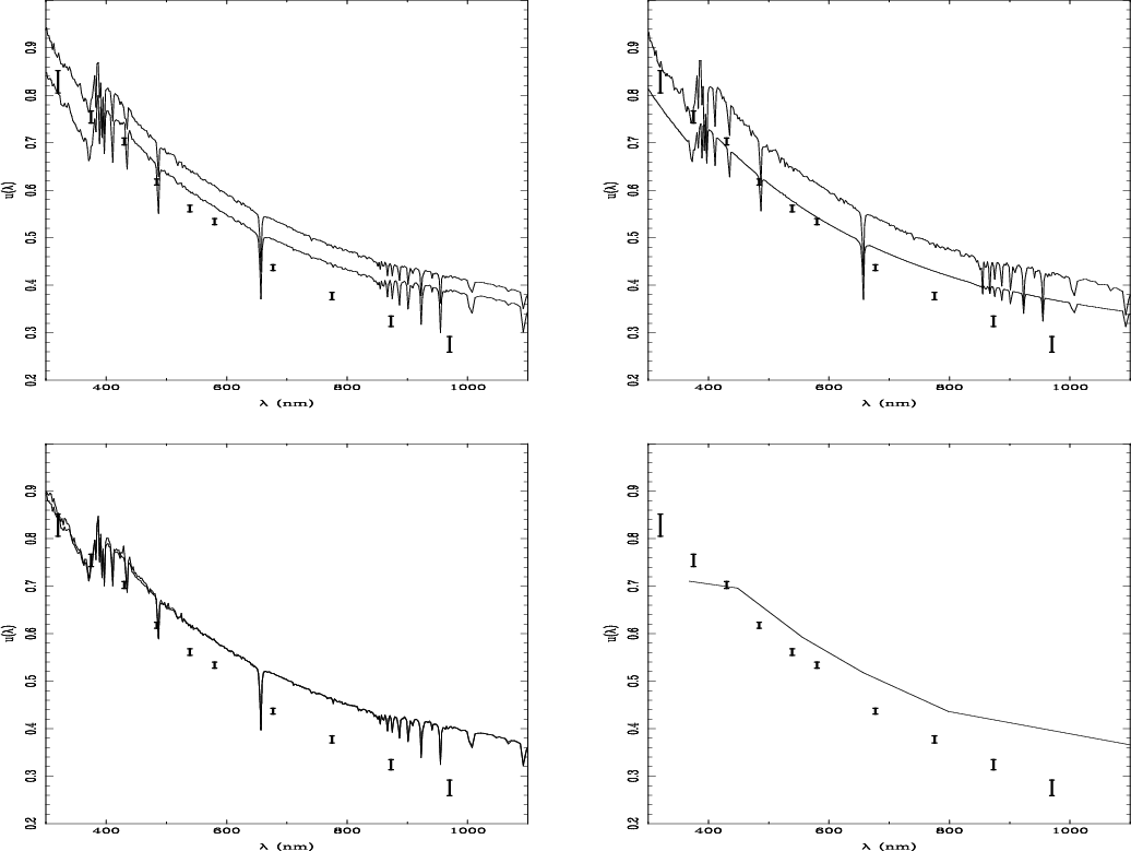 than the ATLAS models. We note that for this model we adopted the U B V R I J H K passbands instead of monochromatic calculations.
