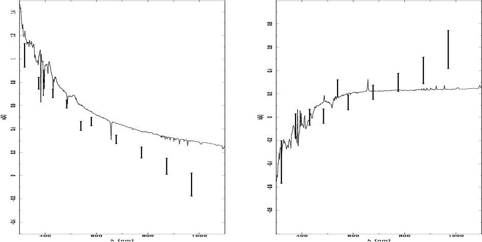 are larger than the empirical ones for wavelengths longer than 800 nm and smaller than the observed for