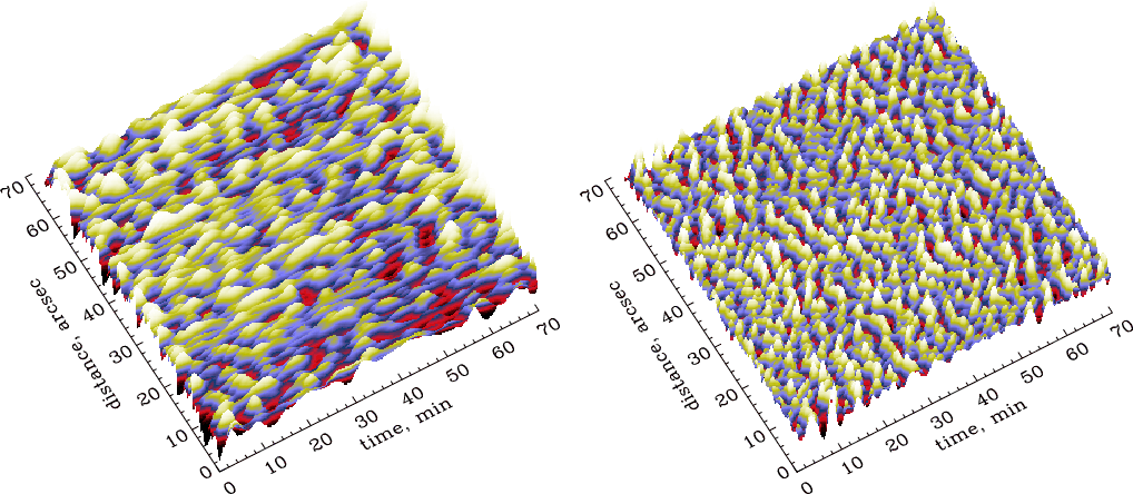 Convective motions in the solar atmosphere have been studied in detail during the past decades, using different types of observations, their analysis, and interpretation. The summary of the investigations before 2000 can be found in Espagnet et al. (1995) and Brandt (2000). According to the final results, the photosphere can be divided into two regions with different physical properties with the border between them lying at heights about 170 km above the continuum formation height (see Espagnet et al. 1995, for details). This conclusion was reached based on the amplitudes of intensity and velocity fluctuations first decreasing with height, reaching minimum at about 170 km and then starting to increase again. The intensities and velocities at heights above and below 170 km do not seem to be correlated with each other. On the other hand, Espagnet et al. (1995) came to the conclusion, based on their own investigations, that the photosphere can be divided into these two regions only in intensity fluctuations, since the vertical convective velocity structure is preserved until heights as high as 500 km. A similar result has also been obtained by Salucci et al. (1994).