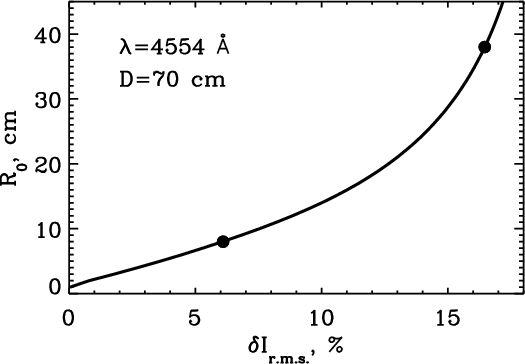 parameter, as given by AO, was fluctuating around R0=7-8. The spatial resolution of observations limited by the image motion