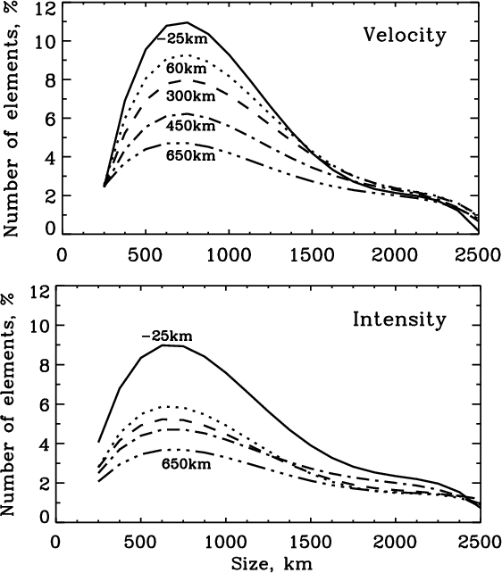 where the authors find that only the intensity structures with sizes over 2