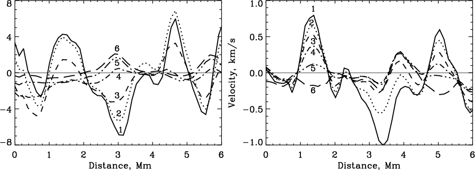 velocity and intensity at the bottom photosphere. The larger the two
