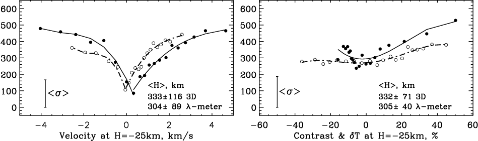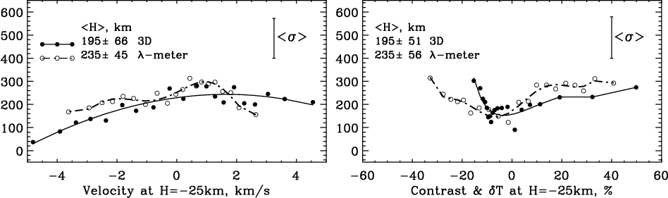 presented in Fig. 13. The panel a of this figure gives the average height of the contrast sign reversal as a function of the Ba II
