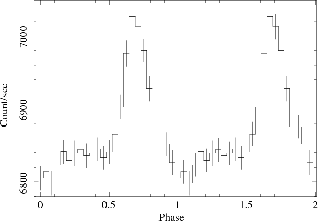 so-called main-on state with high flux (such turn-ons regularly occur in Her X-1 with a period of 35 days and are believed to be caused by a precessing tilted accretion disk around the neutron star, see e.g. Gerend & Boynton 1976).