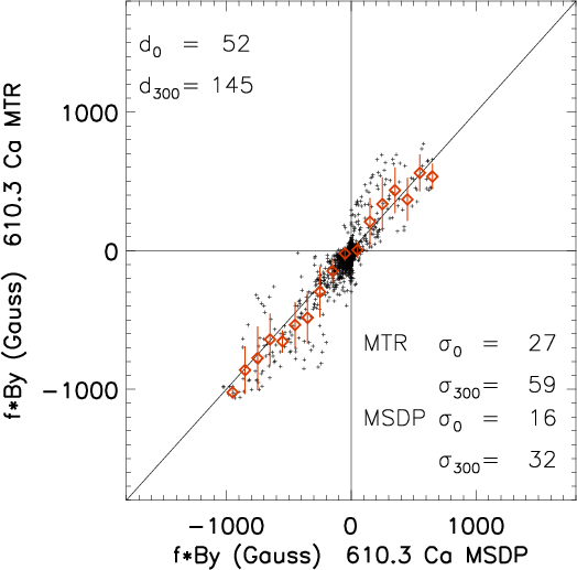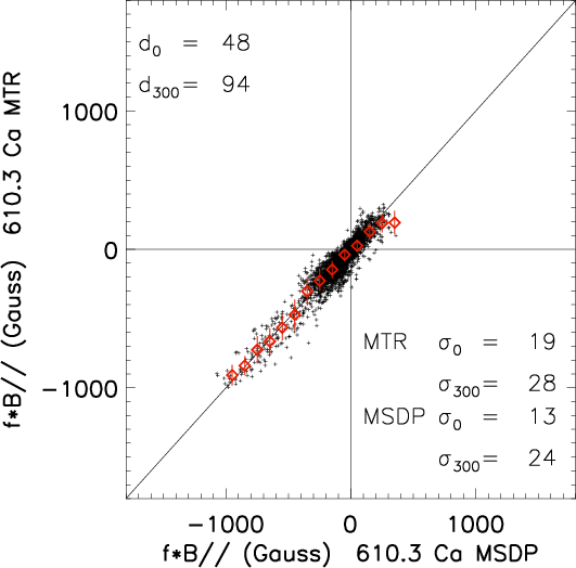 active regions, the rms of the MSDP noise, calculated over