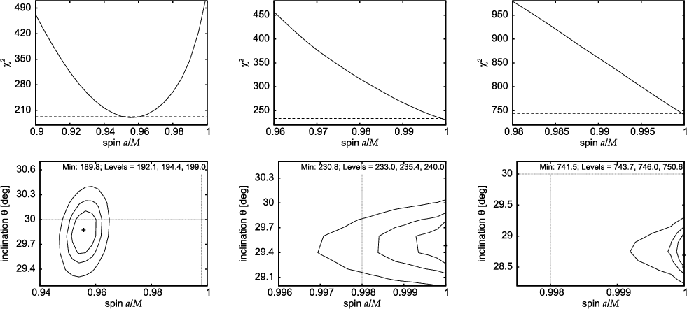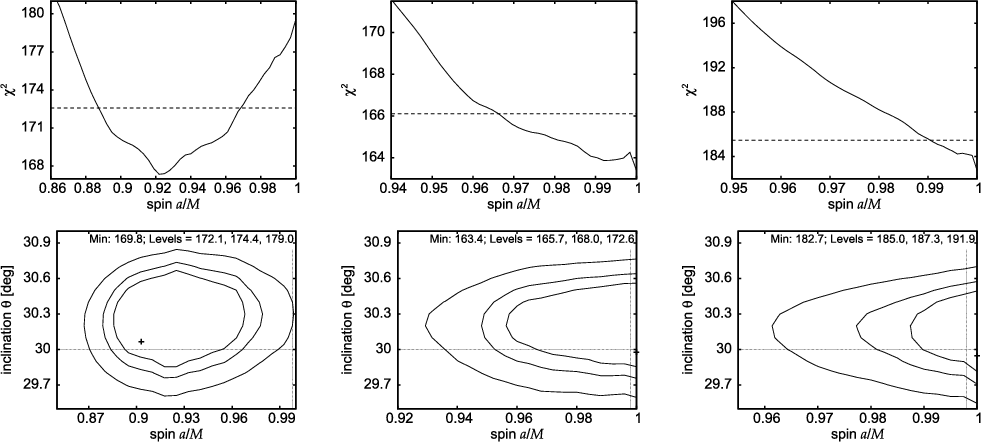 - Here, we refer to the inner disc radius instead of the spin because the latter is not as uniform a quantity as the corresponding ISCO radius to express the uncertainty simply as a percentage value. However, we still suppose that the inner edge of the line emitting region of the disc coincides with the marginally stable orbit. In realistic circumstances this assumption cannot be satisfied precisely, so it introduces an additional source of error. This has been extensively discussed (Beckwith et al. 2008). The magnitude of the resulting error was constrained most recently in work by Reynolds & Fabian (2008) who applied physical arguments about the emission properties of the inner flow. It is very likely that this discussion will have to continue for some time until the emission properties of the general relativistic MHD flows are fully understood.
