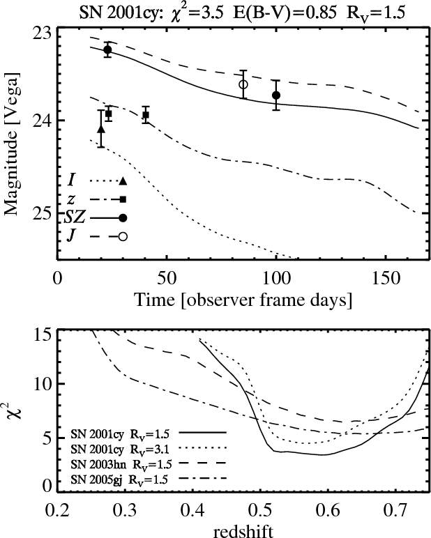 V. Stanishev1 - A. Goobar2,3 - K. Paech2,3 - R. Amanullah2,3 - T. Dahlén4 - J. Jönsson5 - J. P. Kneib6 - C. Lidman7 - M. Limousin6,8 - E. Mörtsell2,3 - S. Nobili2 - J. Richard9 - T. Riehm10,3 - M. von Strauss2,3