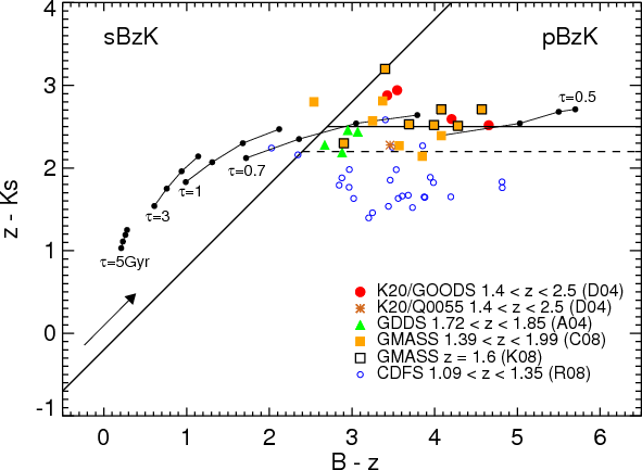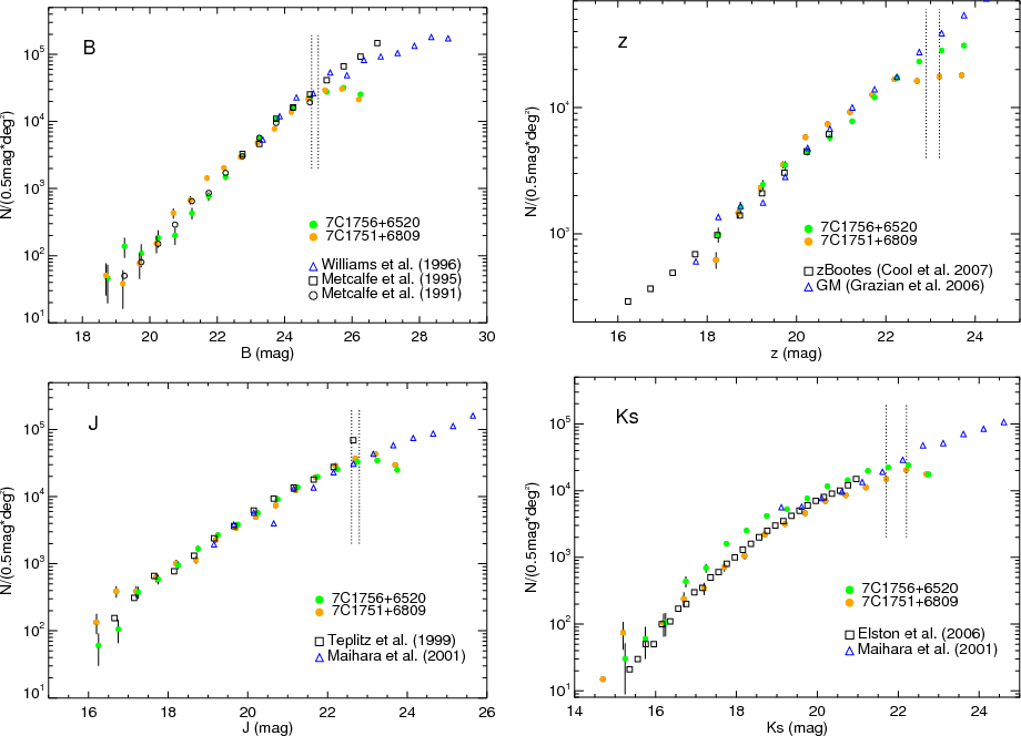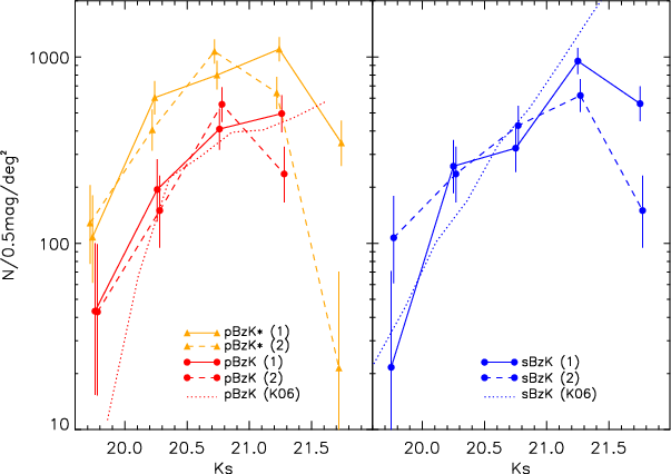 Table 2: Surface densities of BzK galaxies (to the completeness limits; degrees-2).