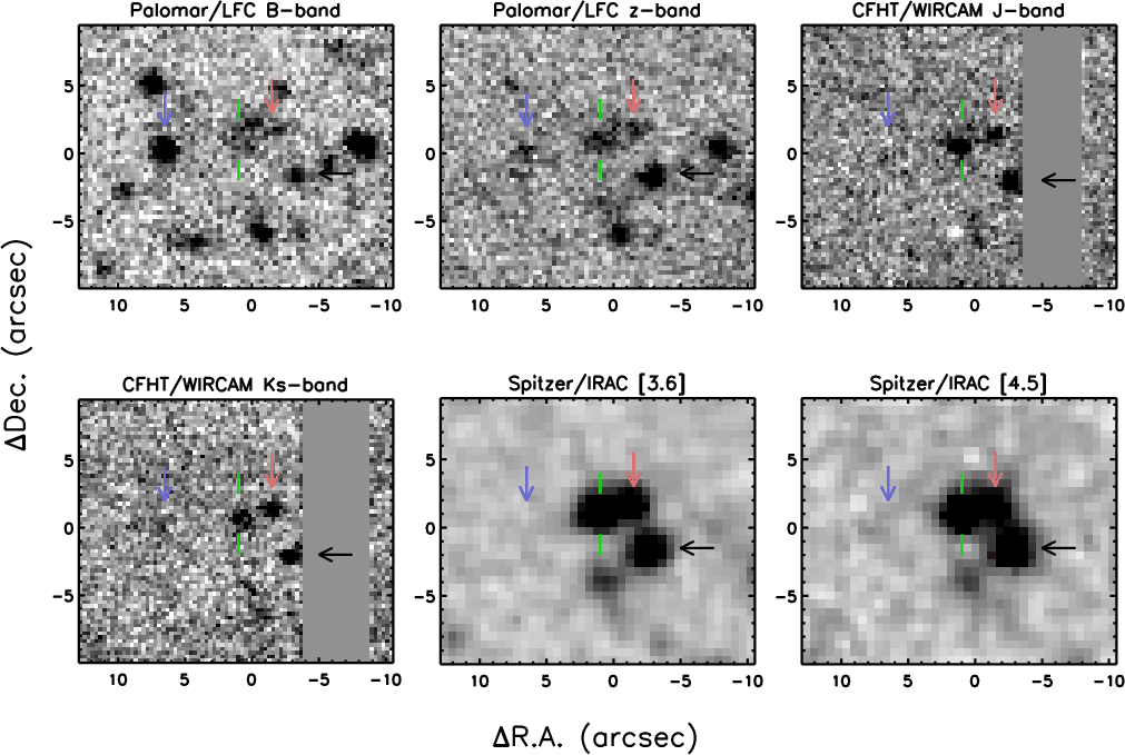 redshift). This is suggestive of several close-by companions. Several
