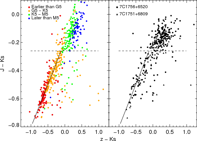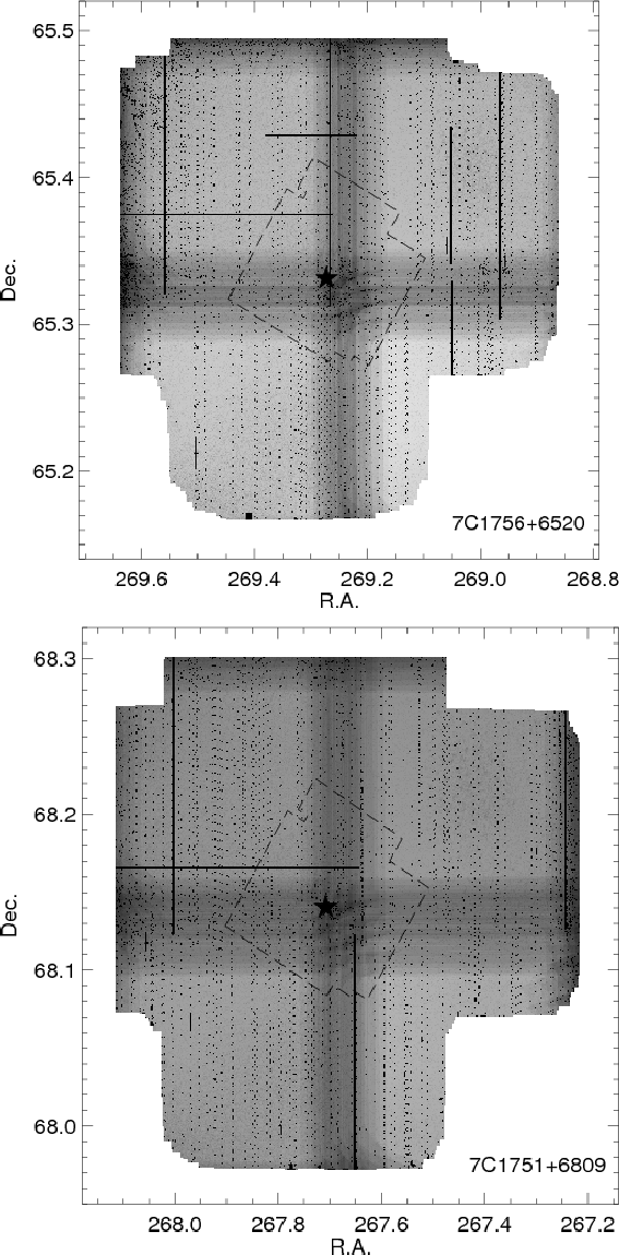 - A new spectrum obtained with Keck/Deimos in September 2009 revealed a new redshift z=1.416 for the radio galaxy 7C1756+6520 (based on [NeV]3426, [OII]3727, and [NeIII]3869). This is different from the tentative z=1.48 reported by Lacy et al. (1999), but does not affect the colour selections or conclusions in this paper.