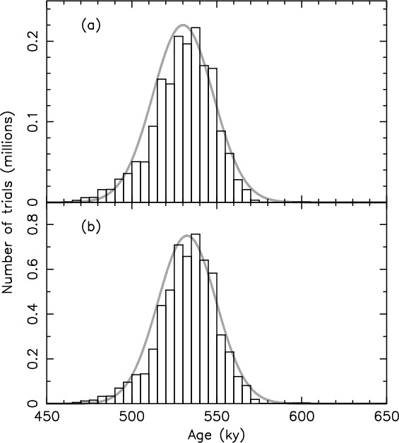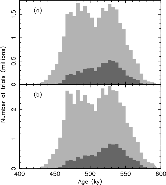 conservative approach, we obtain an age in the 450 to 600 kyr