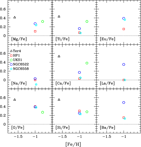 old globular clusters in the Galactic bulge. Also, the abundance ratios