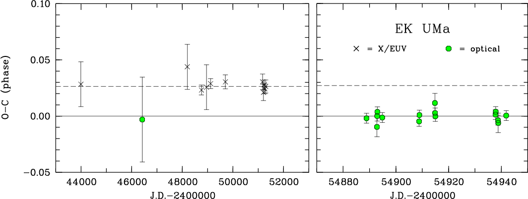 equal in brightness to the orbital average of EK UMa and