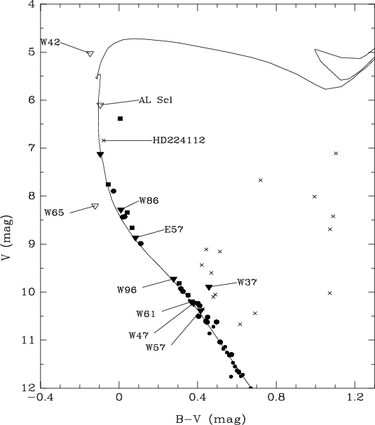 Finally, we noted that the eclipsing binary AL Scl, along with its visual companion, could constitute a multiple system connected to the cluster since, despite its large distance to the cluster center (2.7 deg), photometric and kinematic criteria would give it a high membership probability.