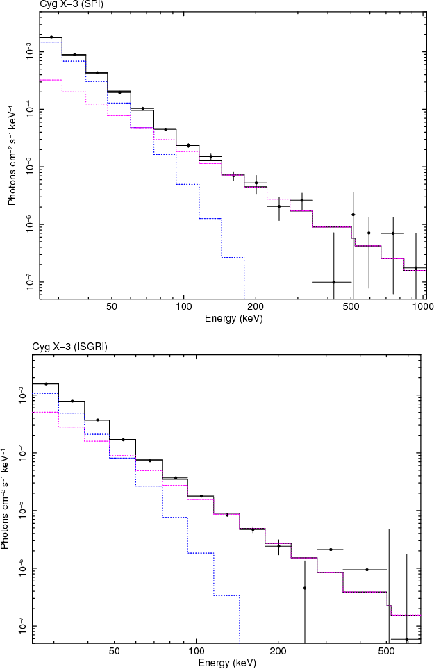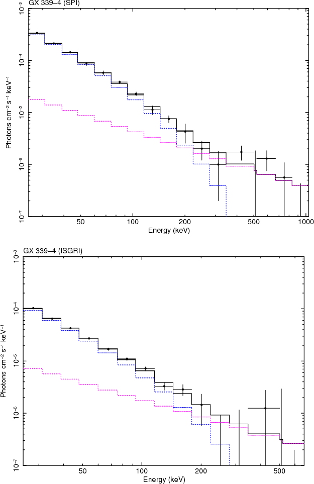In Sect. 2, the SPI and ISGRI instruments are briefly introduced, and the observations and the data selection are described. Section 3 describes the analysis technique. Section 4 presents and discusses the spectra individually while Sect. 5 summarises the results, discusses them jointly and concludes.