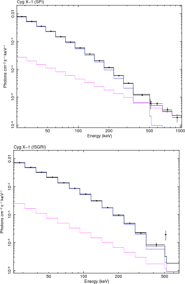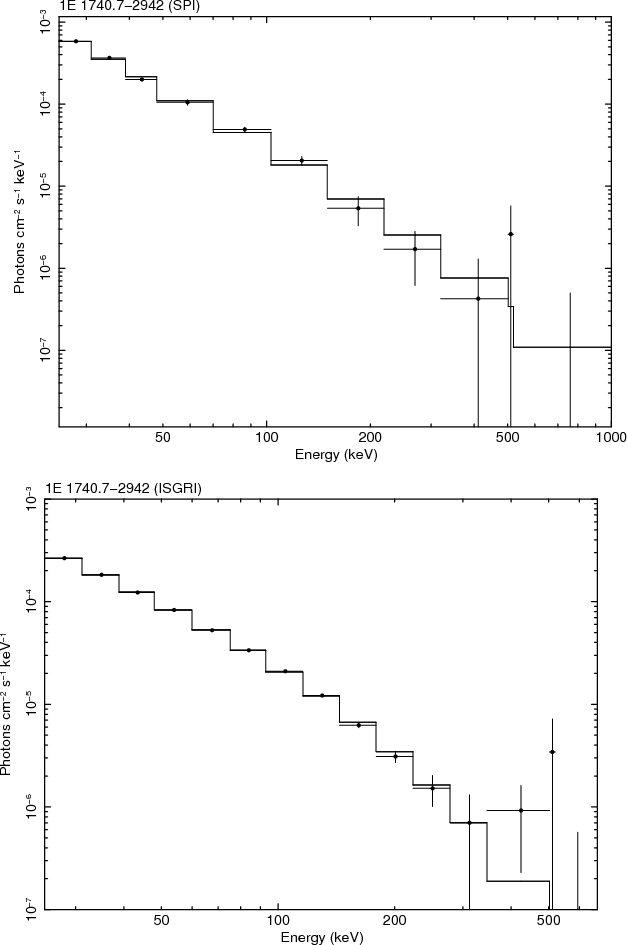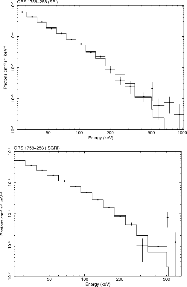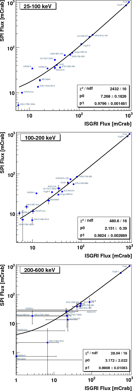 25-1000 keV for SPI and 25-600 keV for ISGRI. We use
