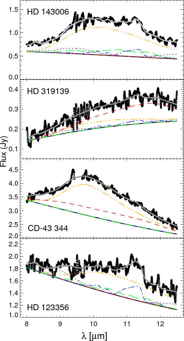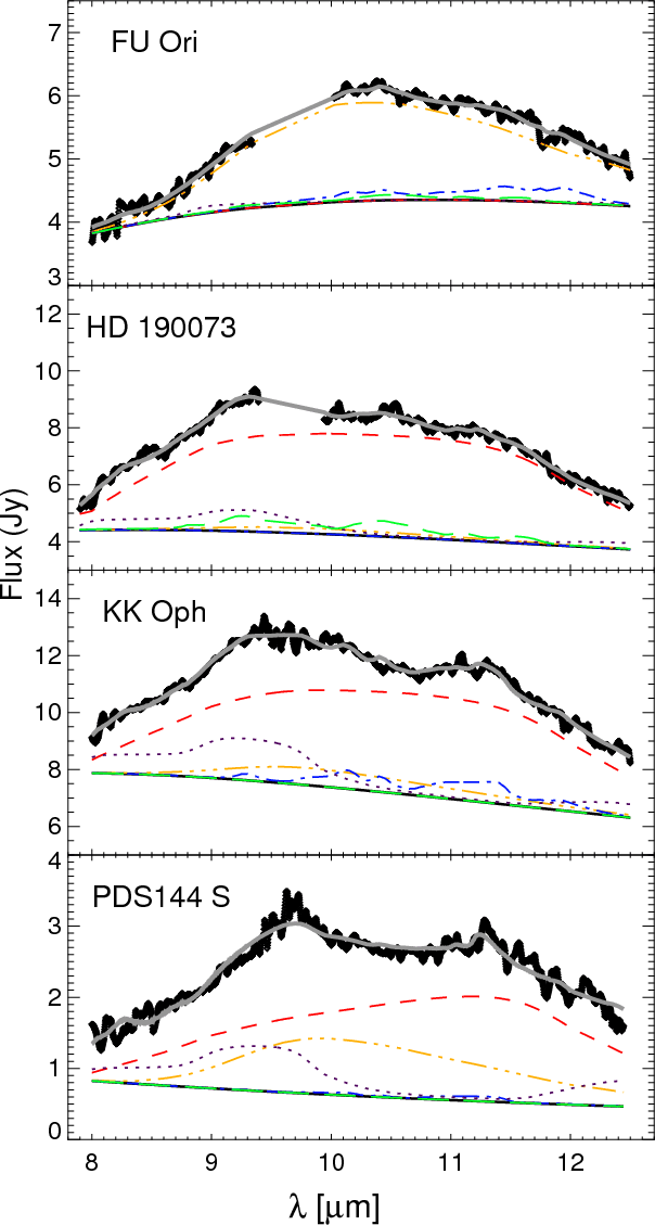 the remaining eight sources are modelled with a mixture of silicates of