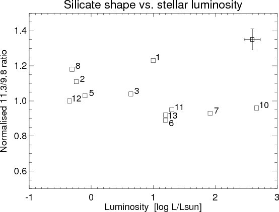 the N-band silicate feature, but no relationship
