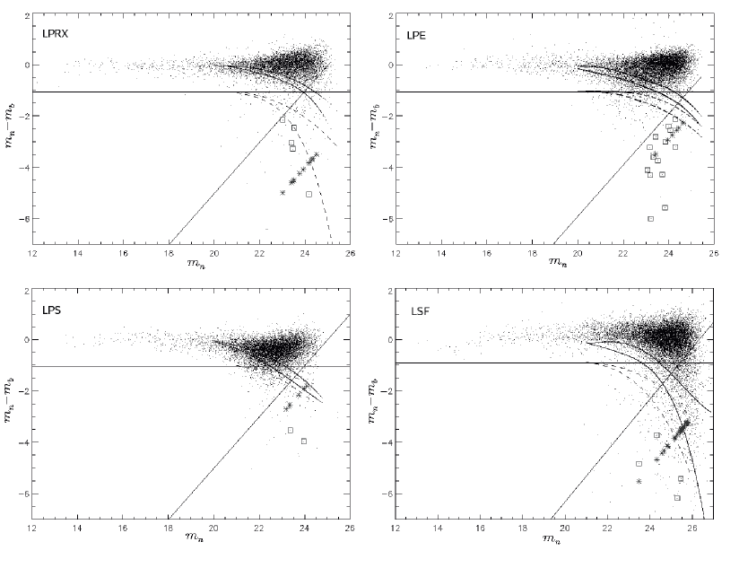 Table 2: Summary of the filter characteristics and exposure times for the broad-band (off-band) images in the various fields.
