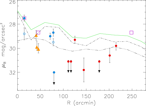 - Because this circular area includes regions with only upper limits, our average surface brightness is lower than that measured by Mihos et al. (2005) in the region between M 87 and M 86.