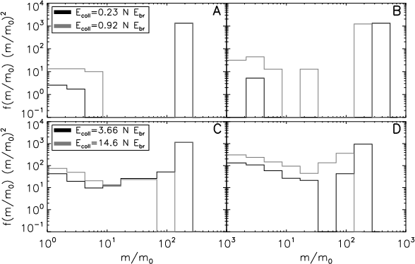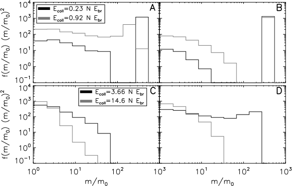 equal mass aggregates, where the same impact energy can lead to
