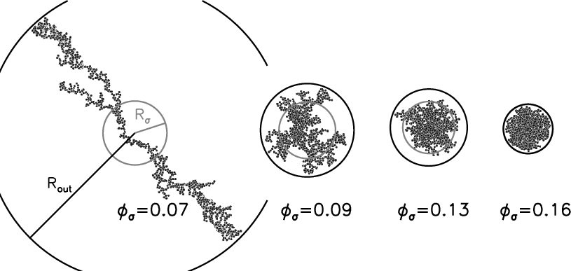 structure of aggregates is quantified by the filling factor that