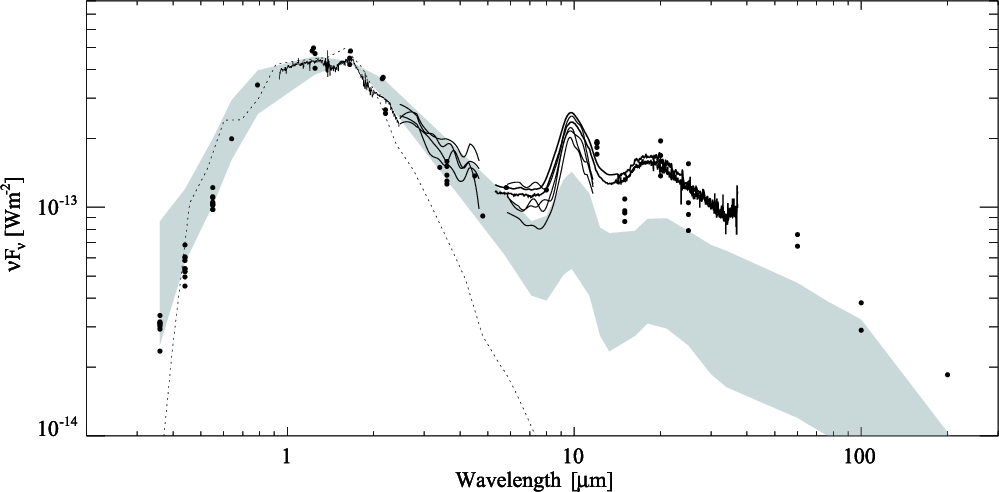 AcknowledgementsThe work was supported by the grants OTKA T 49082 and OTKA K 62304 of the Hungarian Scientific Research Fund. The authors are grateful to C.P. Dullemond for kindly providing RAYTRACE and also to Jeroen Bouwman for providing his routines for the Spitzer IRS data reduction. The research of Á.K. is supported by the Nederlands Organization for Scientific Research. They also acknowledge for observational data from the AAVSO International Database contributed by observers worldwide.