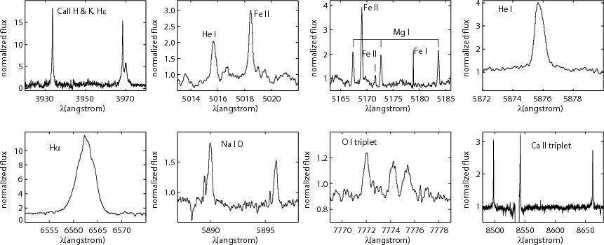 km s-1. Sections of the spectrum showing the most prominent emission lines are plotted in Fig. 2.